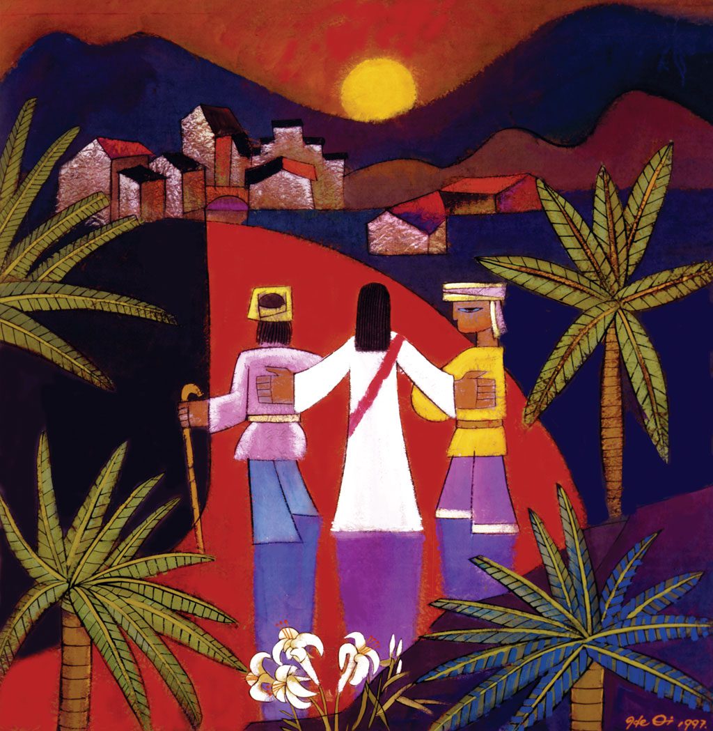 Photo: Jesus also showed up suddenly among two disciples who were walking to Emmaus, a town outside Jerusalem, on Easter afternoon. Painting by Chinese artist He Qi
